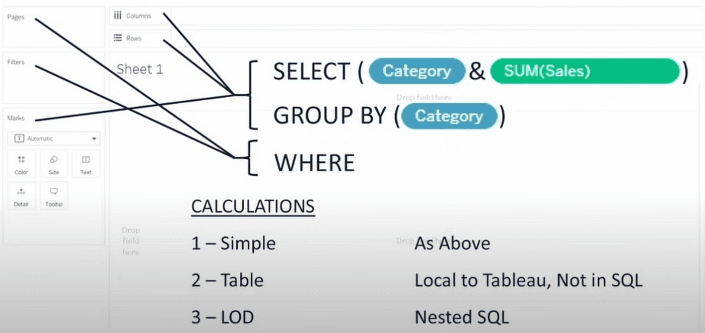 In conclusion, the image below should give a summary of how Tableau and its canvas are effectively a SQL interface, which, in my opinion, makes working with data a much better experience compared to writing those queries yourself!