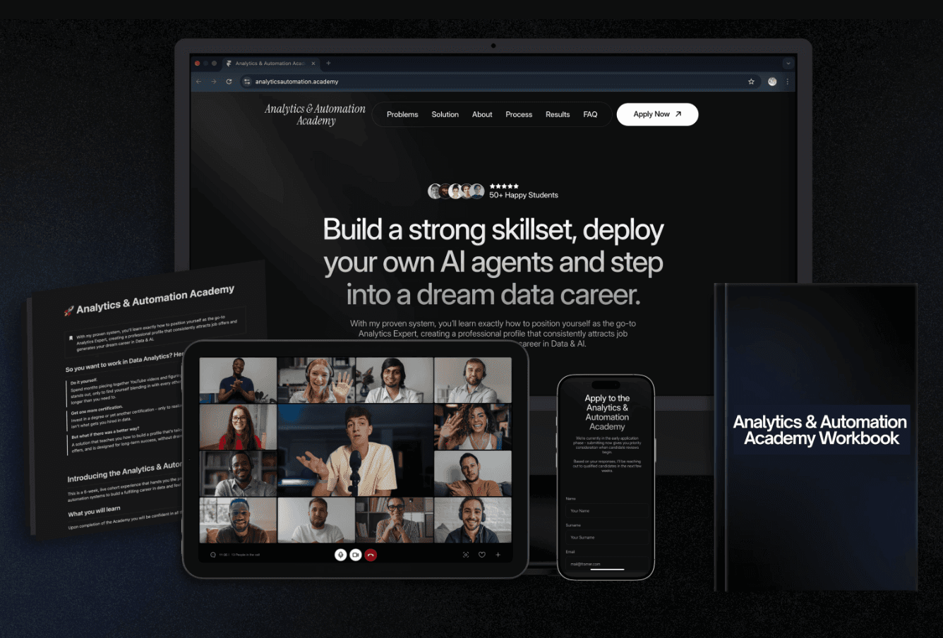 If you feel like you need support in learning all the skills and actually get a job in Data, then consider joining the Analytics and Automation Academy™ to get 1:1 support until you get a job offer.